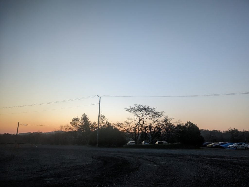4月半ばであるが、テクニックステージのある広島県安芸高田市の朝の気温は4度! 車中泊ではちょっと寒かった。天気は快晴、寒さの中気持ちのいい朝を迎えた